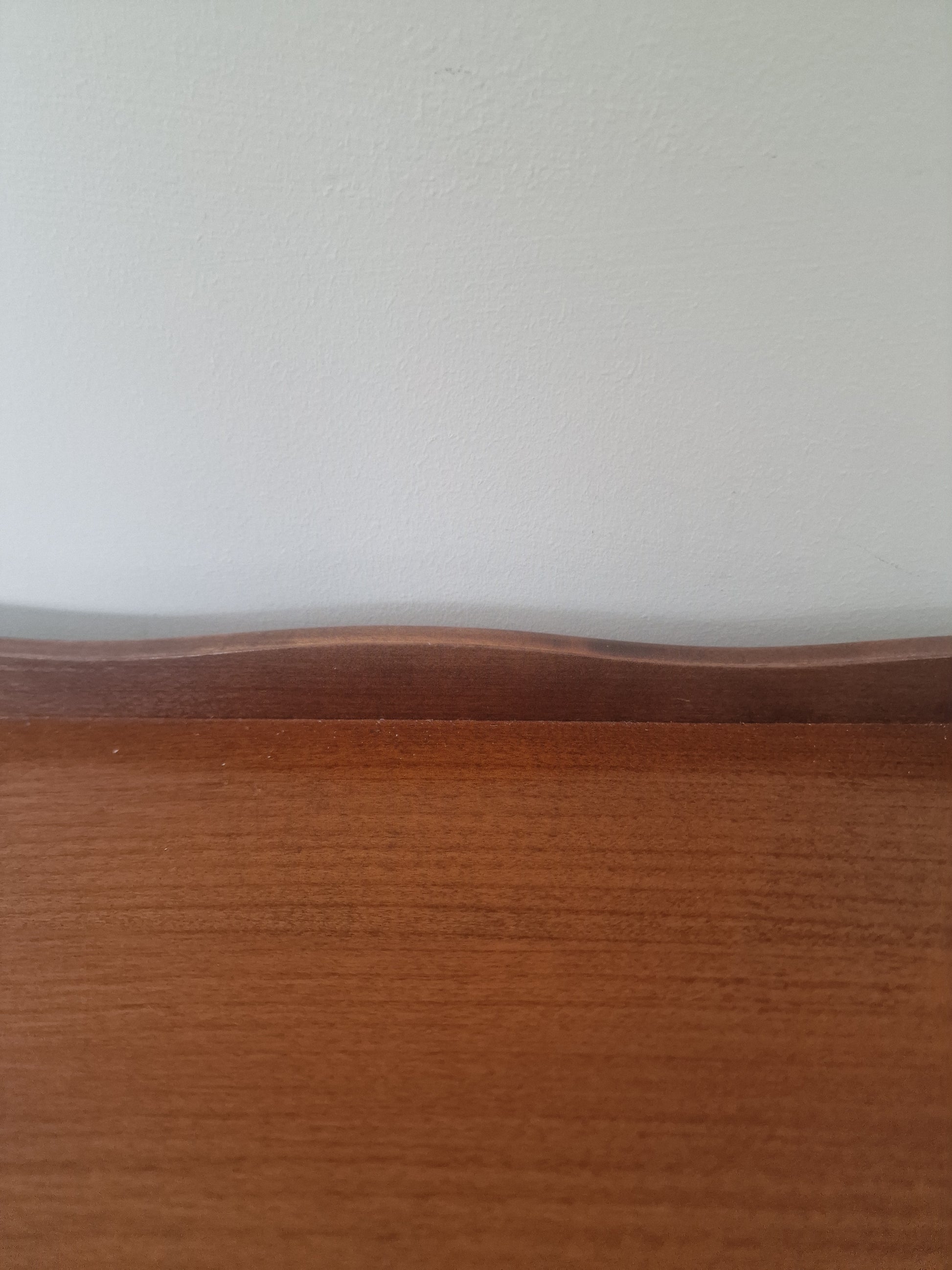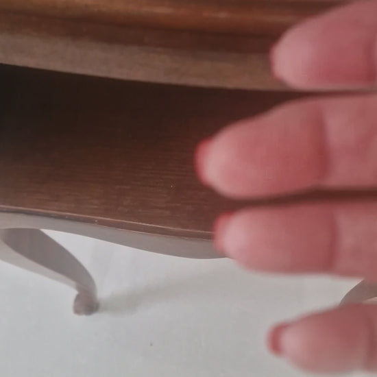 Please note that one table is very slightly lighter in colour than the other (see photo) probably because it was placed nearer to a window Also one table has a barely noticeable hairline crack across the top (see final photo)