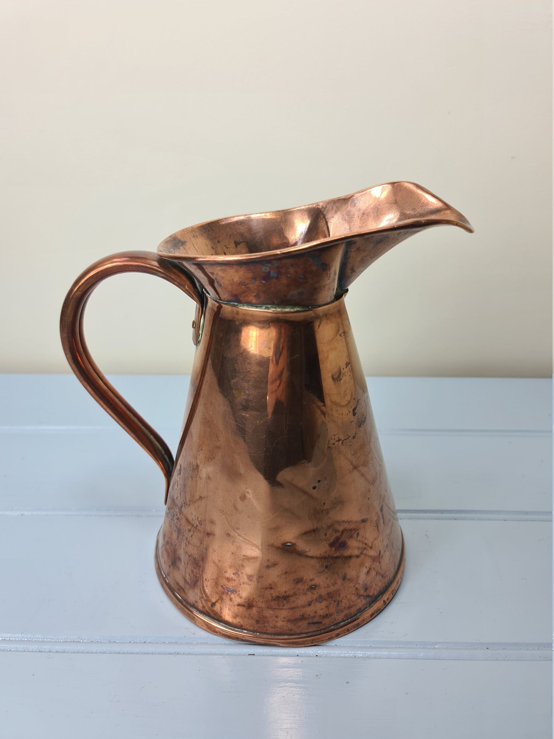 Rare Victorian copper jug by quality kitchen equipment supplier Henry Wilson & Co Ltd of Liverpool Initials R.M.S.P. stamped on the front