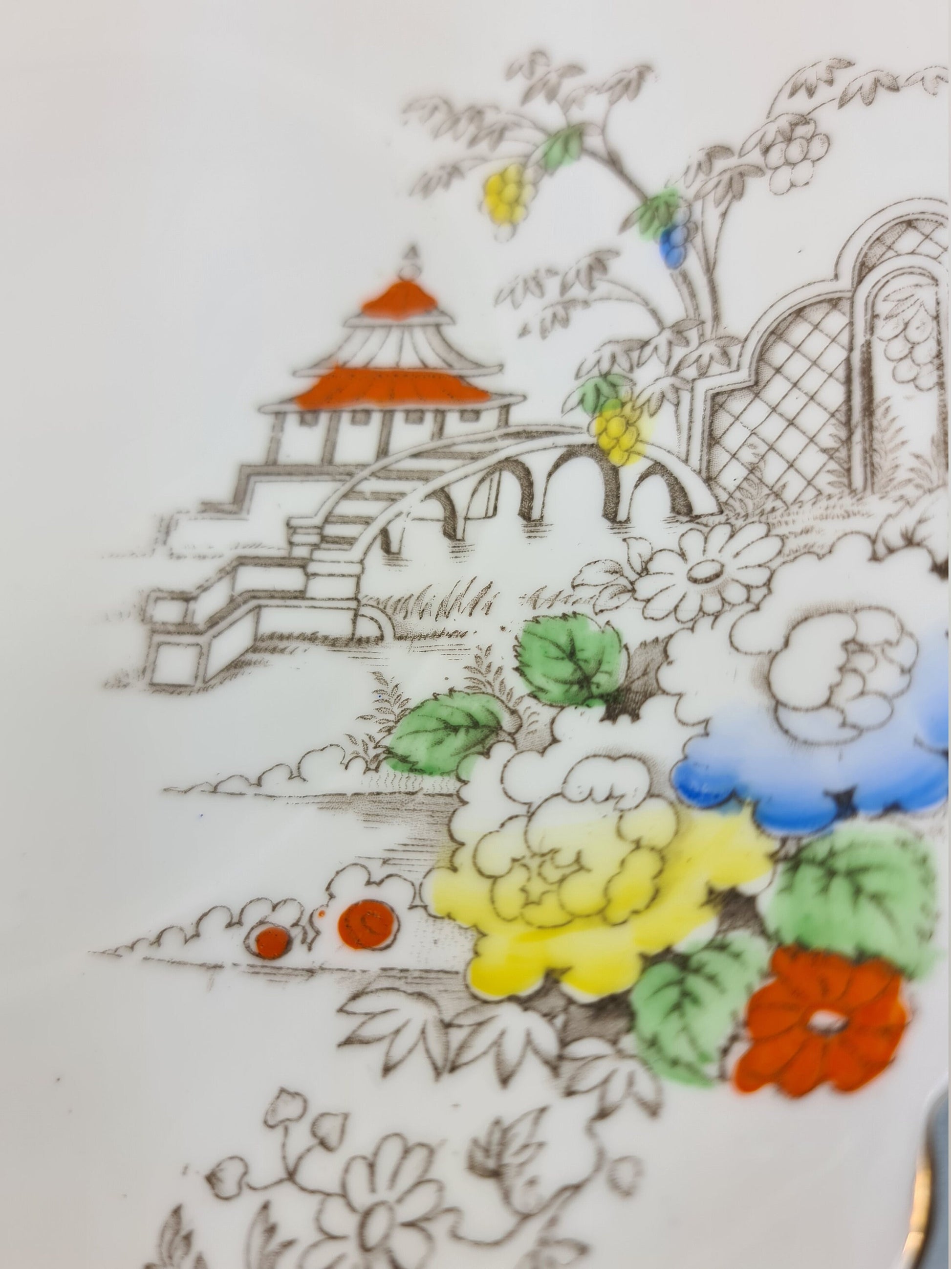 Vintage 1930s art deco Heathcote China tea plate sandwich platter cake tray biscuit plate Bone china Retro kitchen Shabbychic Fluted edges with gold trim Compact Immaculate condition Ideal gift Size: width 22cm 8.75in indentation 11cm 4.5in height 3cm 1.25in