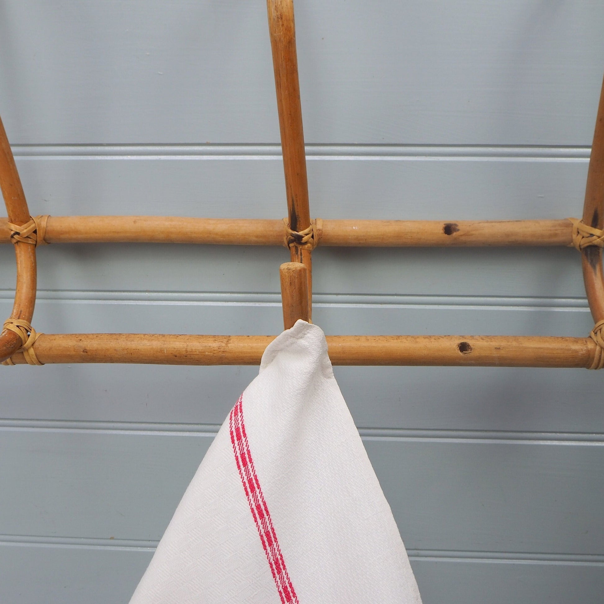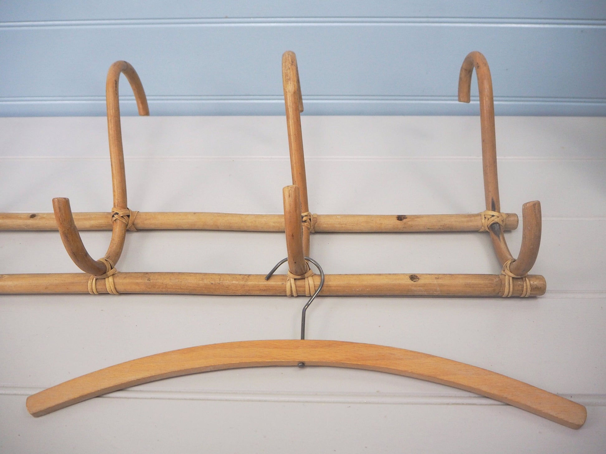 Vintage French bamboo 4 hook rack Antique coat hooks Unusual coat Hanger Wooden coat or hat rack 1950 Four peg coat hook Retro Kitchen Hall Porch Size: Length of rack 60cm 23¾in Depth of rack 10cm 4in Total height 24cm 9½in