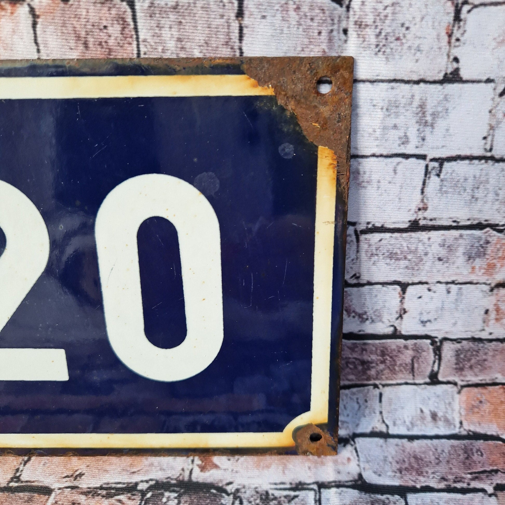 Vintage French enamel navy blue and white house number 20 Traditional enamel house sign French house number plaque Original antique piece Still used in France today Size: Length 18cm Height 14cm Depth 2mm