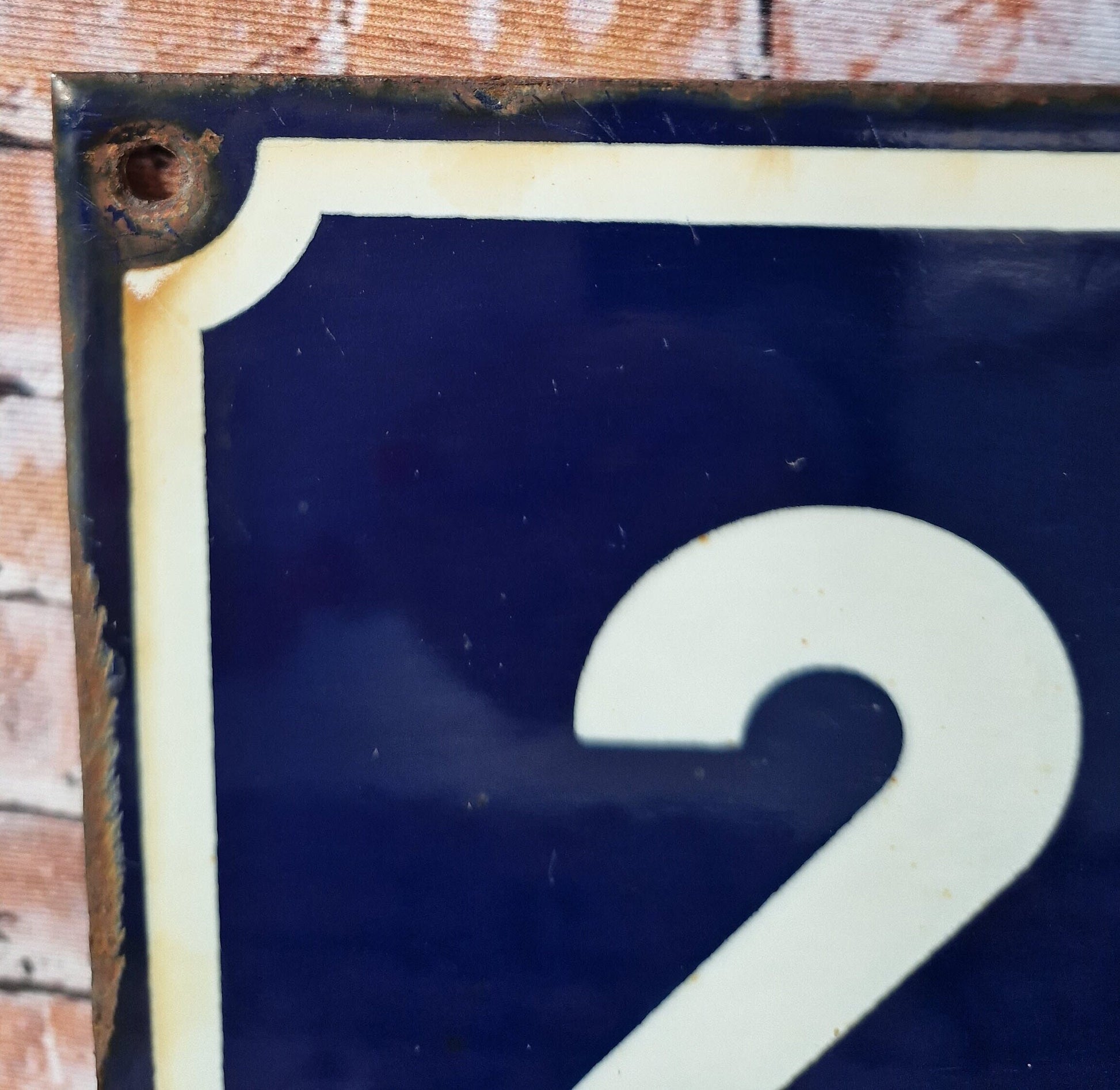 Vintage French enamel navy blue and white house number plaque 20
