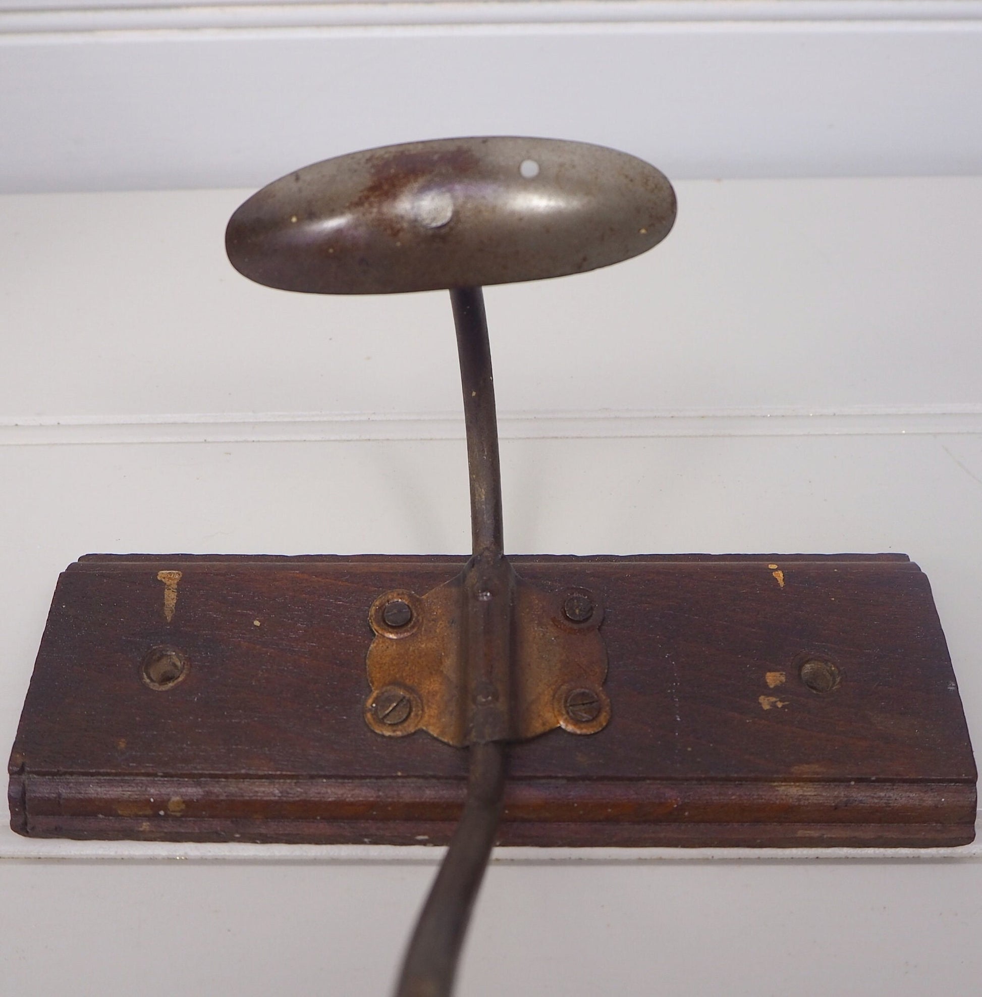 Vintage French red wood and metal single hook Substantial peg hook Coat rack Clothes rack Coat hanger Peg rack Hat or bag hook Excellent vintage condition Size: Length 17cm 6¾in Depth of rack 6cm 2¼in Height including hook 20cm 7¾in Diameter of knob top 3cm 1¼in Height of rack 1cm ½in